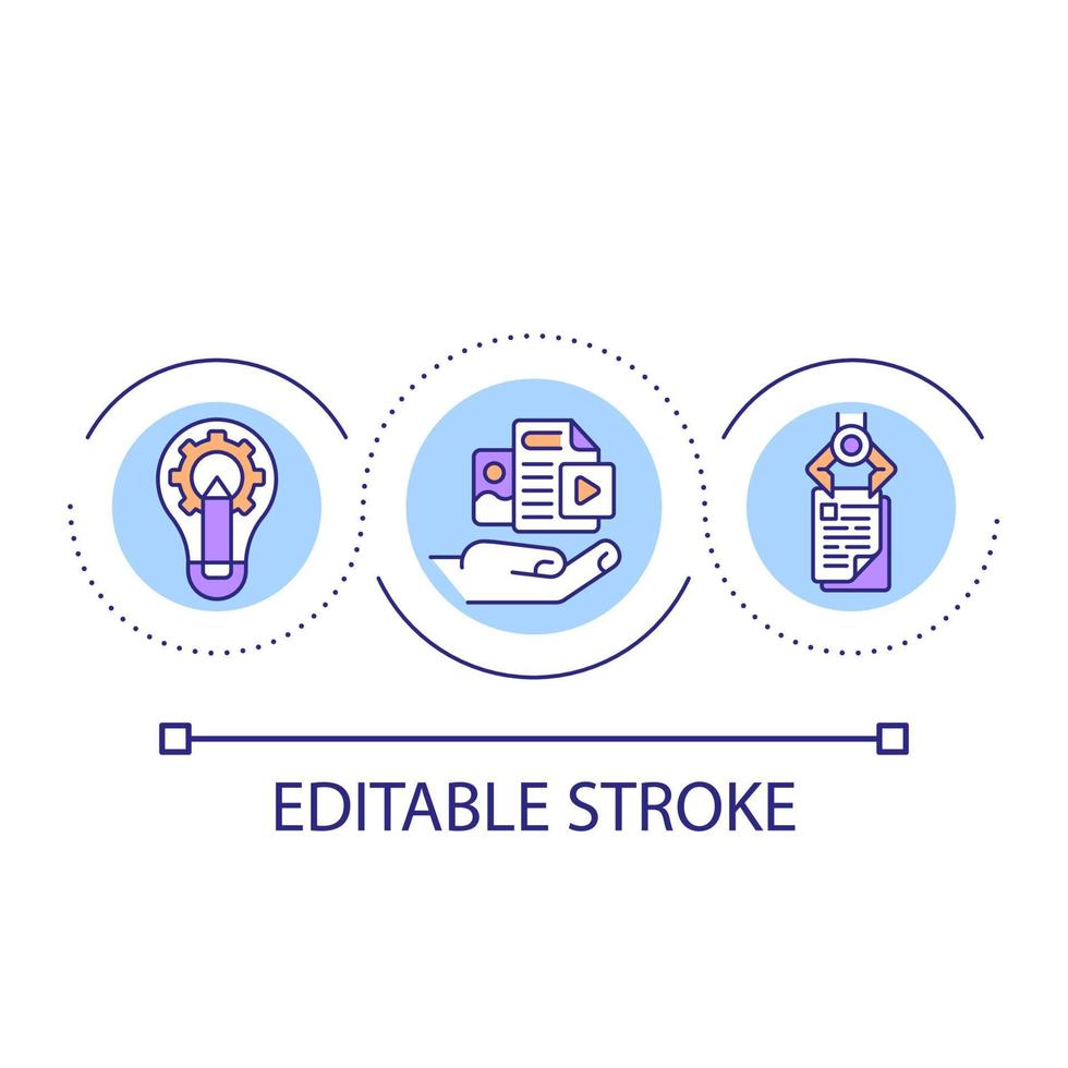 Automated content generation loop concept icon. AI in marketing. Business promotion abstract idea thin line illustration. Isolated outline drawing. Editable stroke Pro Vector