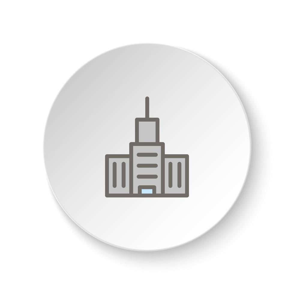 Round button for web icon, building, house. Button banner round, badge interface for application illustration on white background Pro Vector and Pro SVG