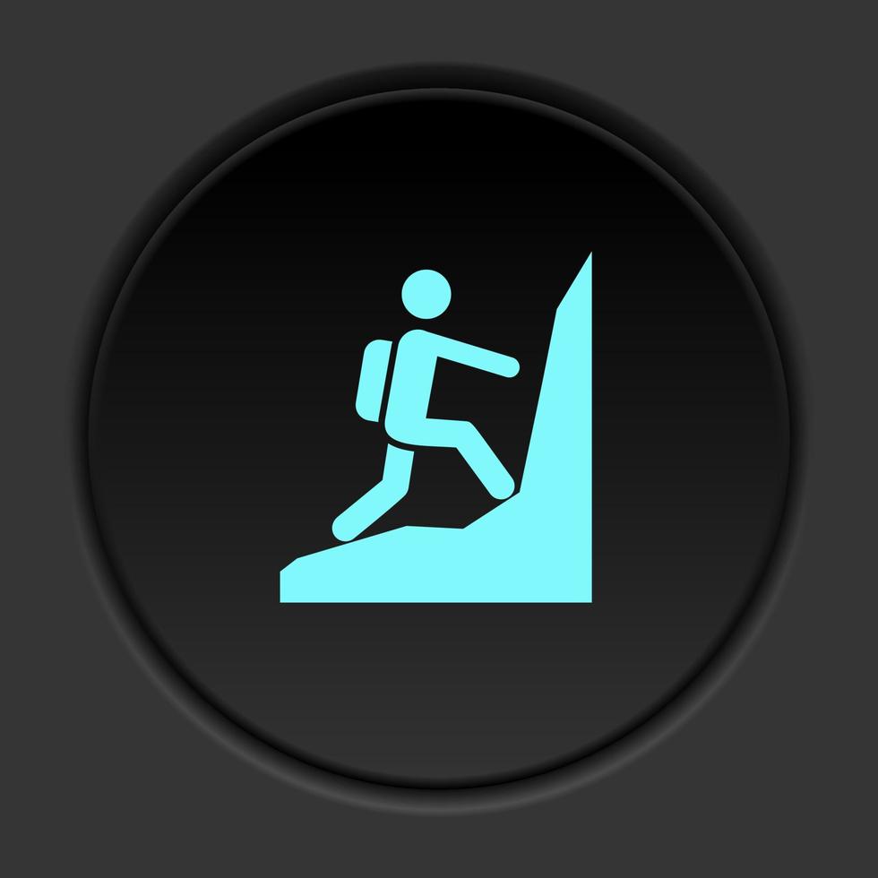 Round button icon Mountain man. Button banner round badge interface for application illustration on dark background Pro Vector and Pro SVG