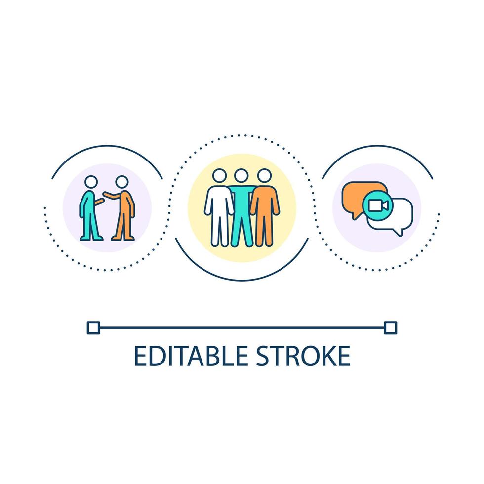 Team meeting loop concept icon. Work relationship. Friendly connection. Mutual support. Collective abstract idea thin line illustration. Isolated outline drawing. Editable stroke Pro Vector