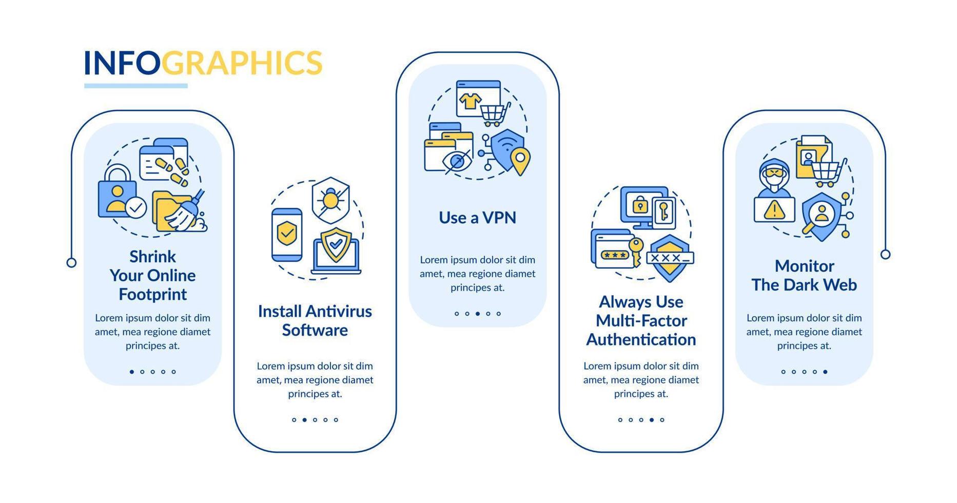 Prevent social engineering attacks rectangle infographic template. Data visualization with 5 steps. Editable timeline info chart. Workflow layout with line icons Pro Vector