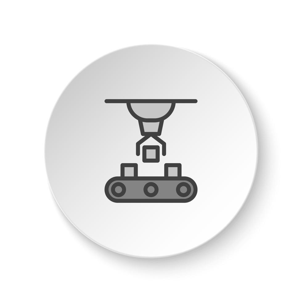 Round button for web icon, articulated robot, conveyor robot . Button banner round, badge interface for application illustration on white background Pro Vector and Pro SVG