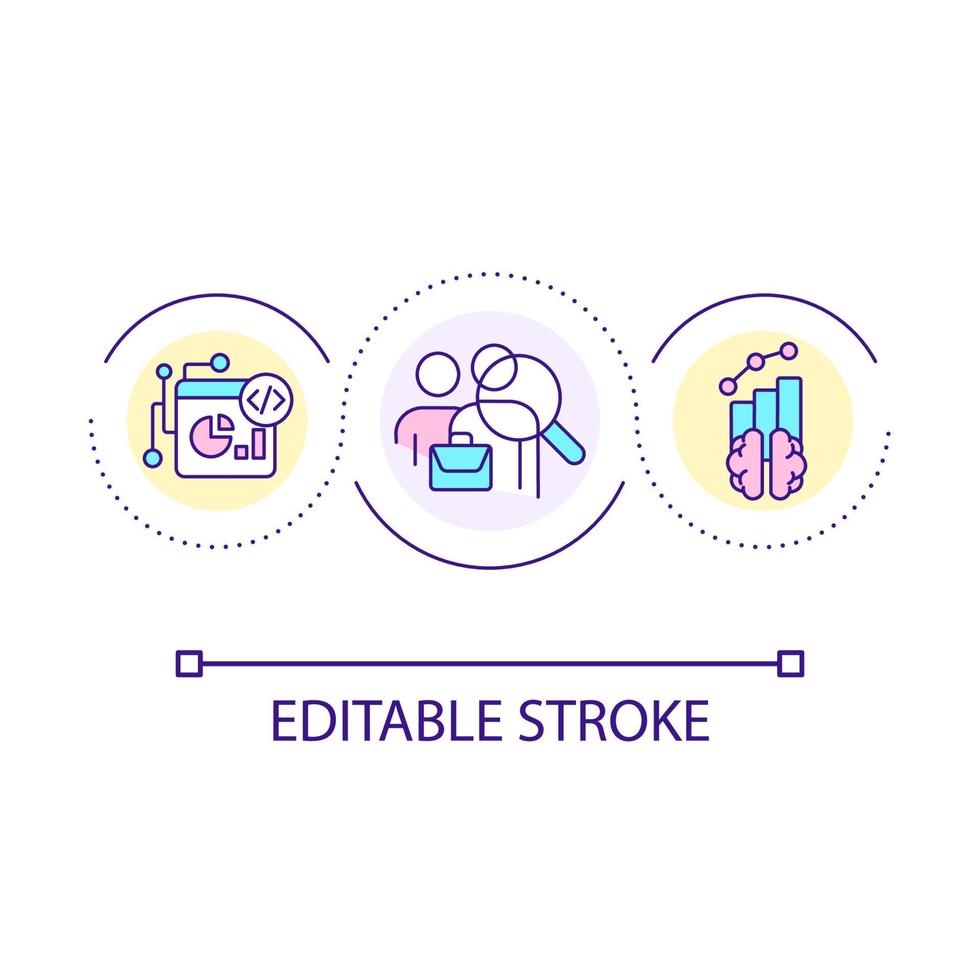 Hiring data science engineers loop concept icon. Information processing specialists abstract idea thin line illustration. Isolated outline drawing. Editable stroke Pro Vector