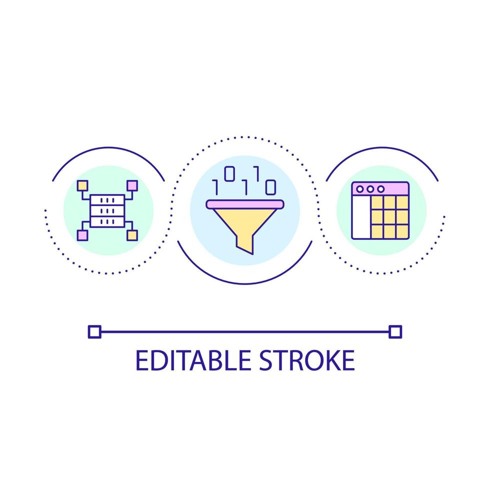 Regular data filtration loop concept icon. Dataset analytics. Technology of information processing abstract idea thin line illustration. Isolated outline drawing. Editable stroke Pro Vector