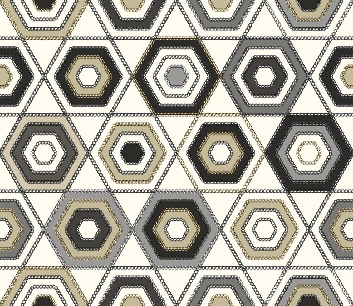 Geometric seamless pattern with metallic chains and hexagons. Seamless hexagonal pattern. Vector illustration Pro Vector
