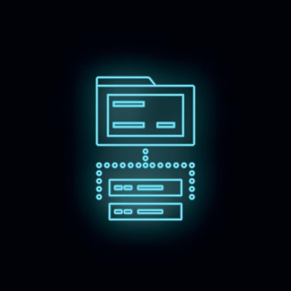 Server, folder, database, neon, icon. Web Development Vector Icon. Element of simple symbol for websites, web design, mobile app, infographics. Line symbol for website design on white background Pro Vector