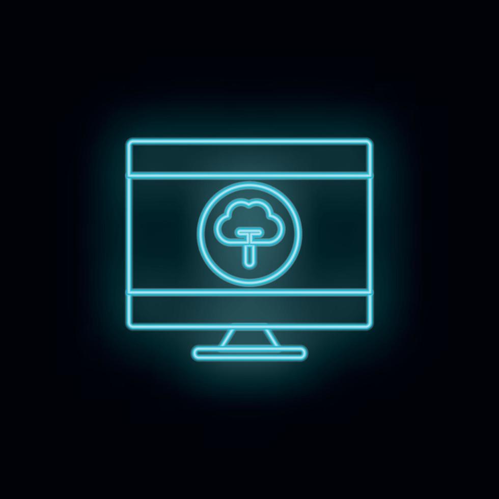 Cloud, cleaning, monitor, neon, icon. Web Development Vector Icon. Element of simple symbol for websites, web design, mobile app, infographics. Line symbol for website design on white background Pro Vector