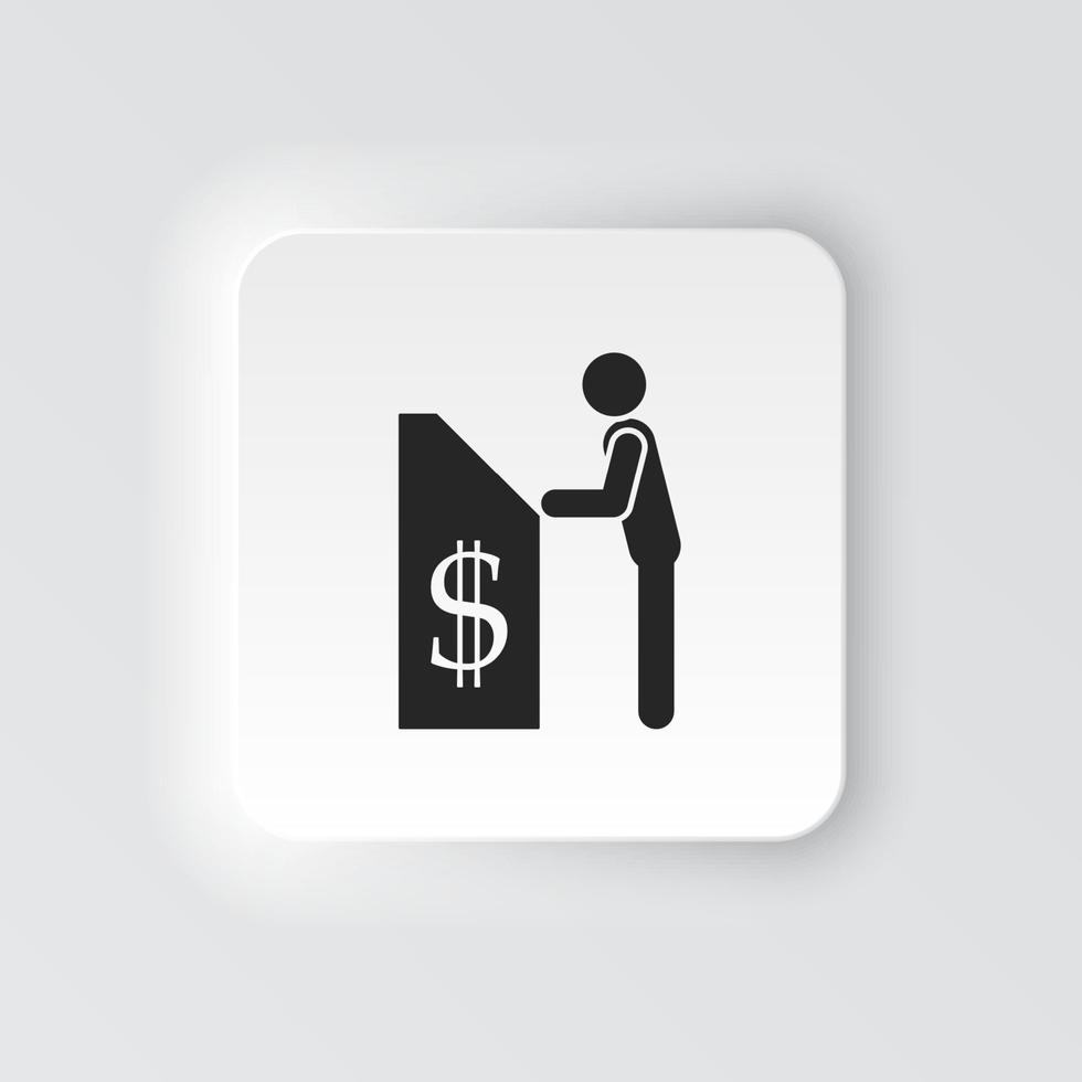 Rectangle button icon Man and cashier machine. Button banner Rectangle badge interface for application illustration on neomorphic style on white background Pro Vector