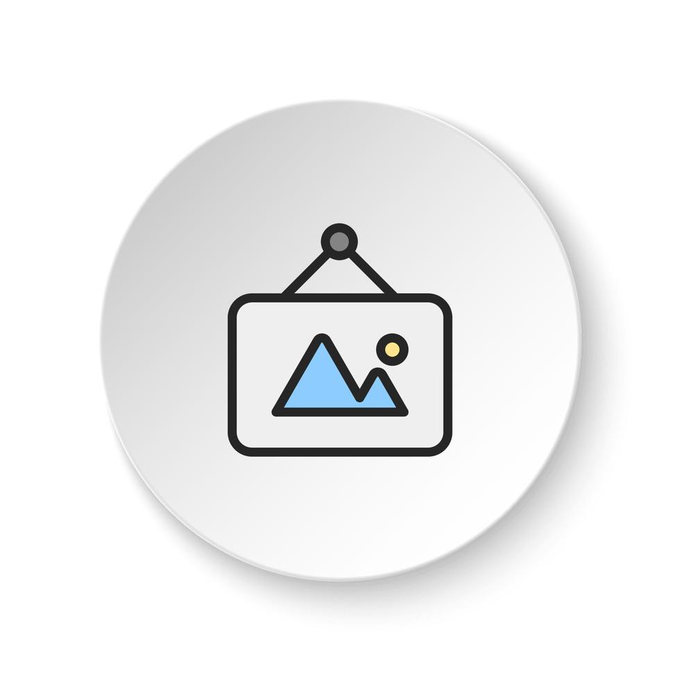 Round button for web icon, photo, gallery, picture. Button banner round, badge interface for application illustration on white background Pro Vector and Pro SVG