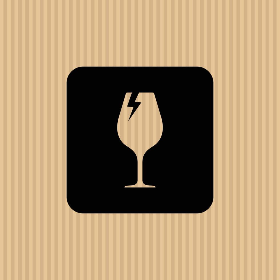 Fragile simple flat icon vector illustration with cardboard texture background Pro Vector