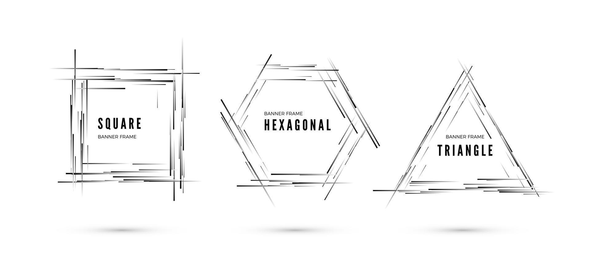 Set of banners. Lines with monochrome gradient create frame in form of geometric shapes. Vector illustration Pro Vector