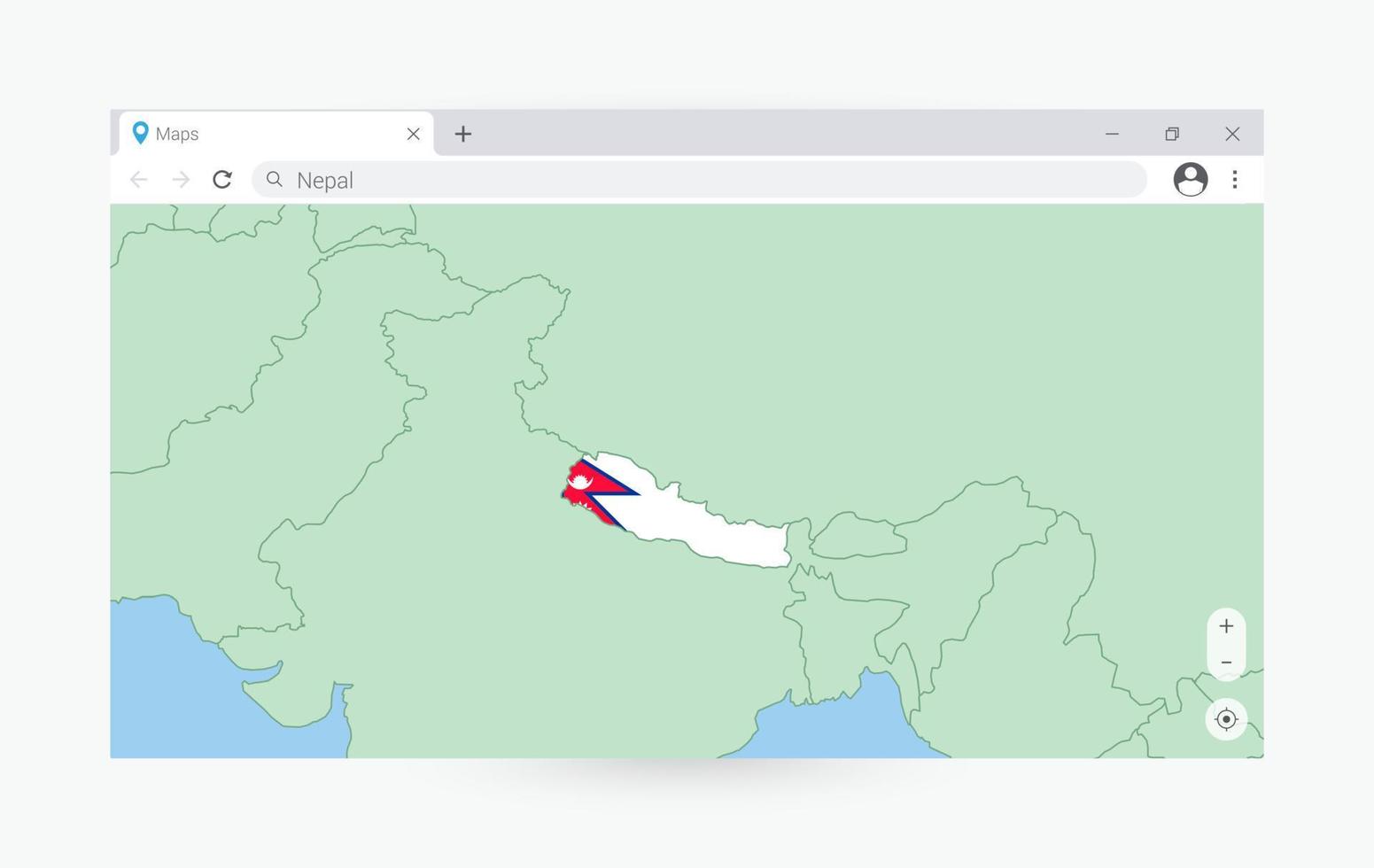 Browser window with map of Nepal, searching Nepal in internet. Pro Vector