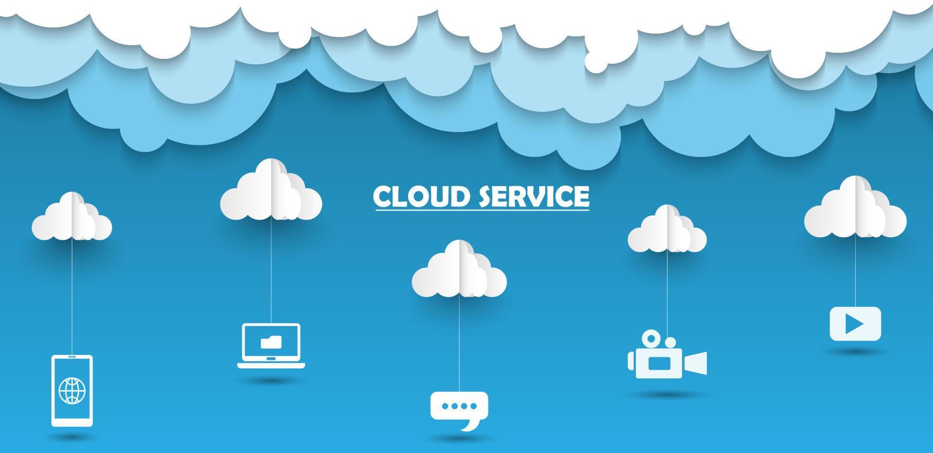 Vector white and blue cloud service paper cut style with shadow, connect from cloud and internet device media and related thing, internet storage and technology concept Pro Vector