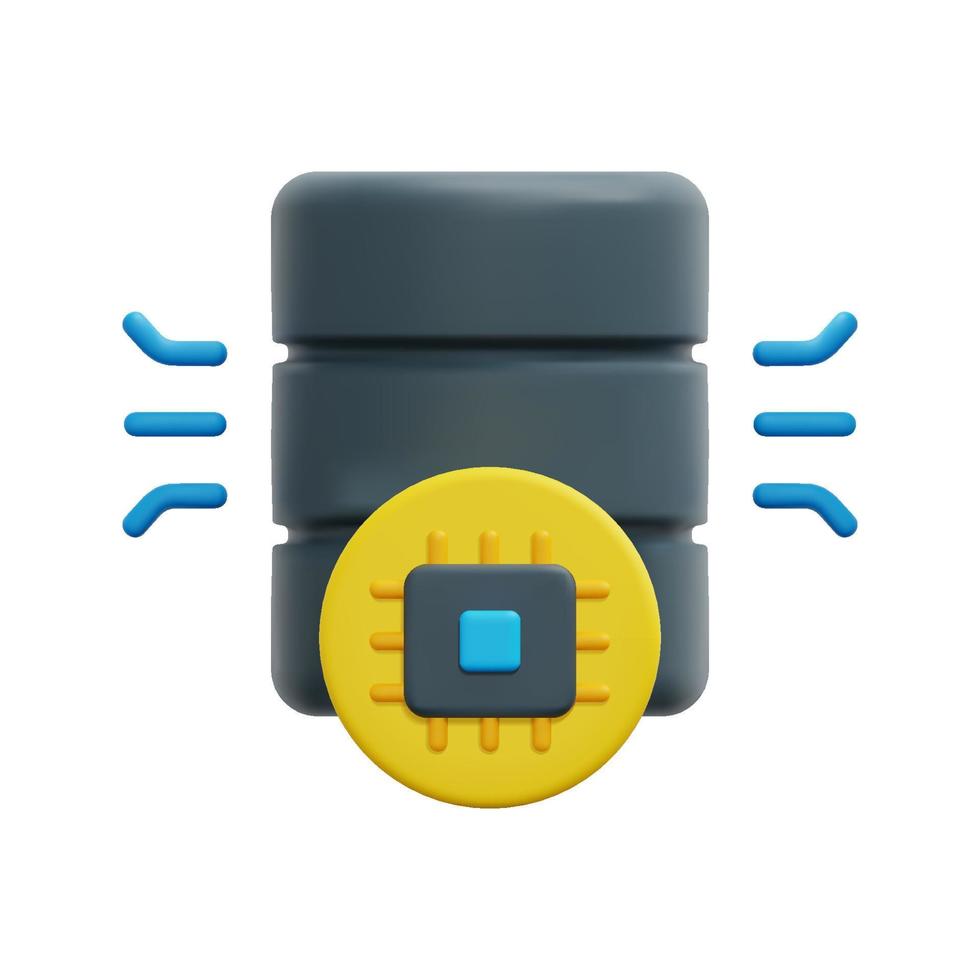 3d data with ai chip icon vector. Isolated on white background. 3d artificial intelligence, business and technology concept. Cartoon minimal style. 3d database icon vector render illustration. Pro Vector