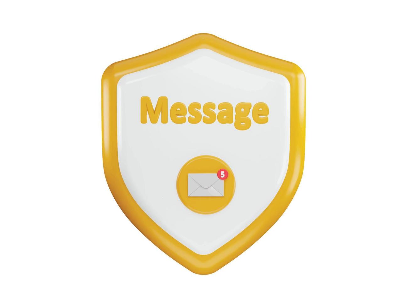 A yellow shield with a message in the middle that says message icon with 3d vector icon illustration Pro Vector