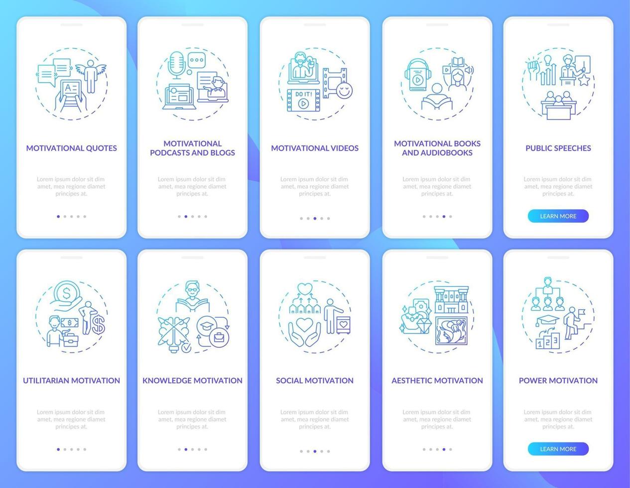 Motivational content onboarding mobile app page screen with concepts set Pro Vector