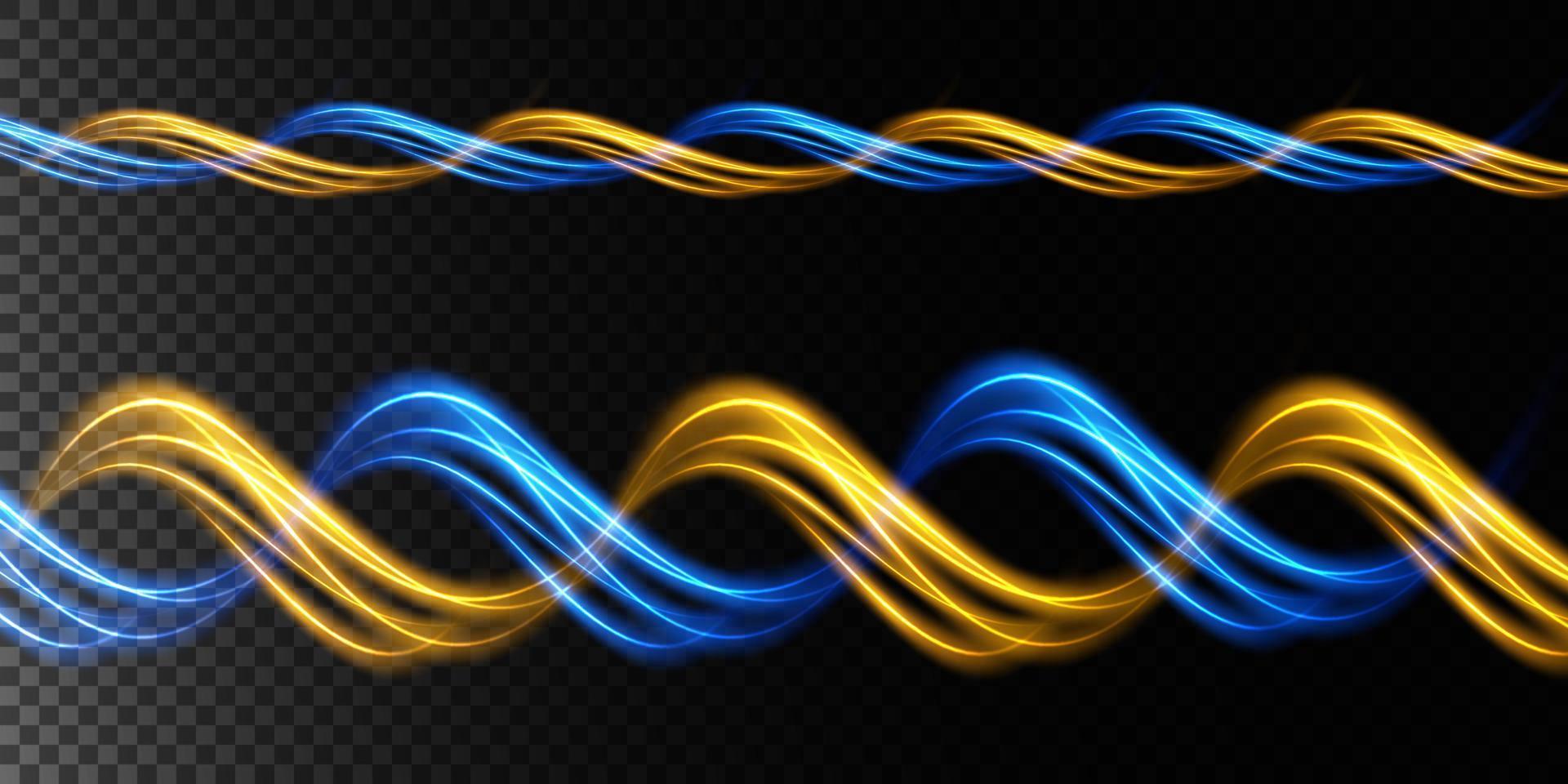 Abstract light lines of movement and speed in blue and gold. Light everyday glowing effect. semicircular wave, light trail curve swirl Pro Vector