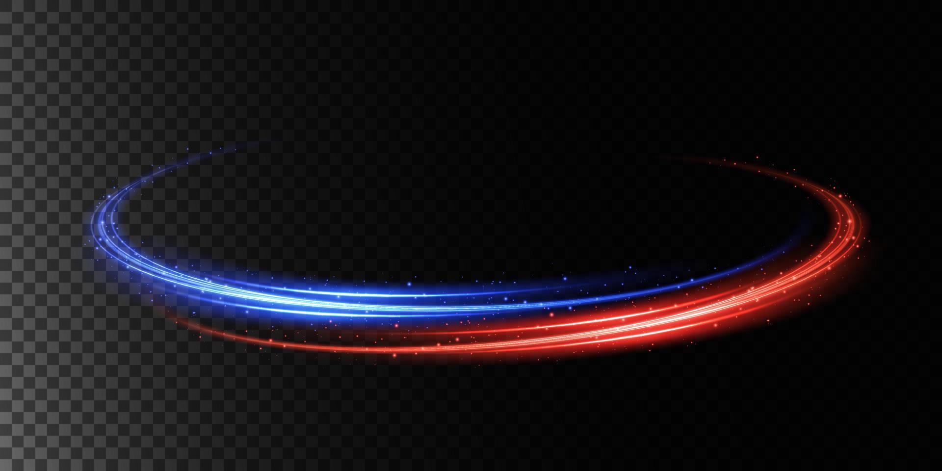 Abstract light lines of movement and speed in blue and red. Light everyday glowing effect. semicircular wave, light trail curve swirl Pro Vector