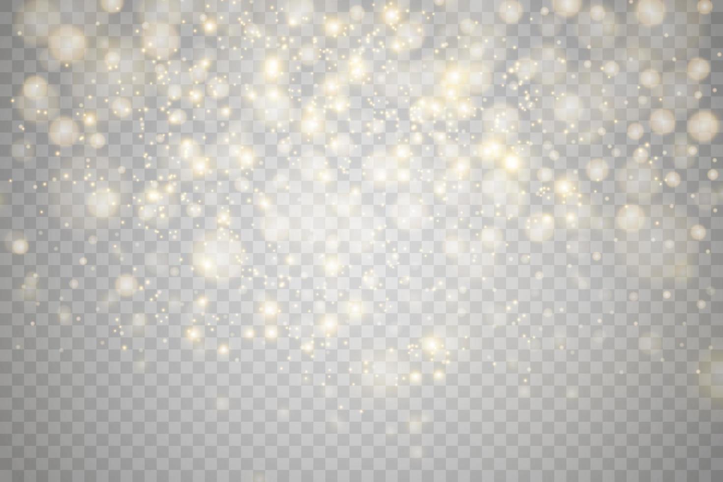 Golden Bokeh light lights effect background. Christmas background of shining dust Christmas glowing light bokeh confetti and spark overlay texture for your design. Pro Vector