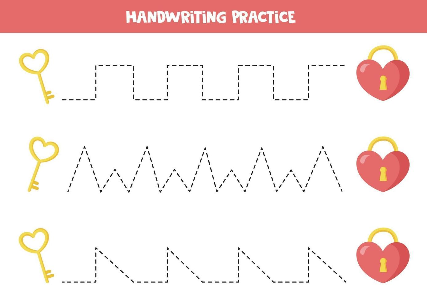 Tracing lines with valentine elements. Trace the lines with lock and key. Pro Vector