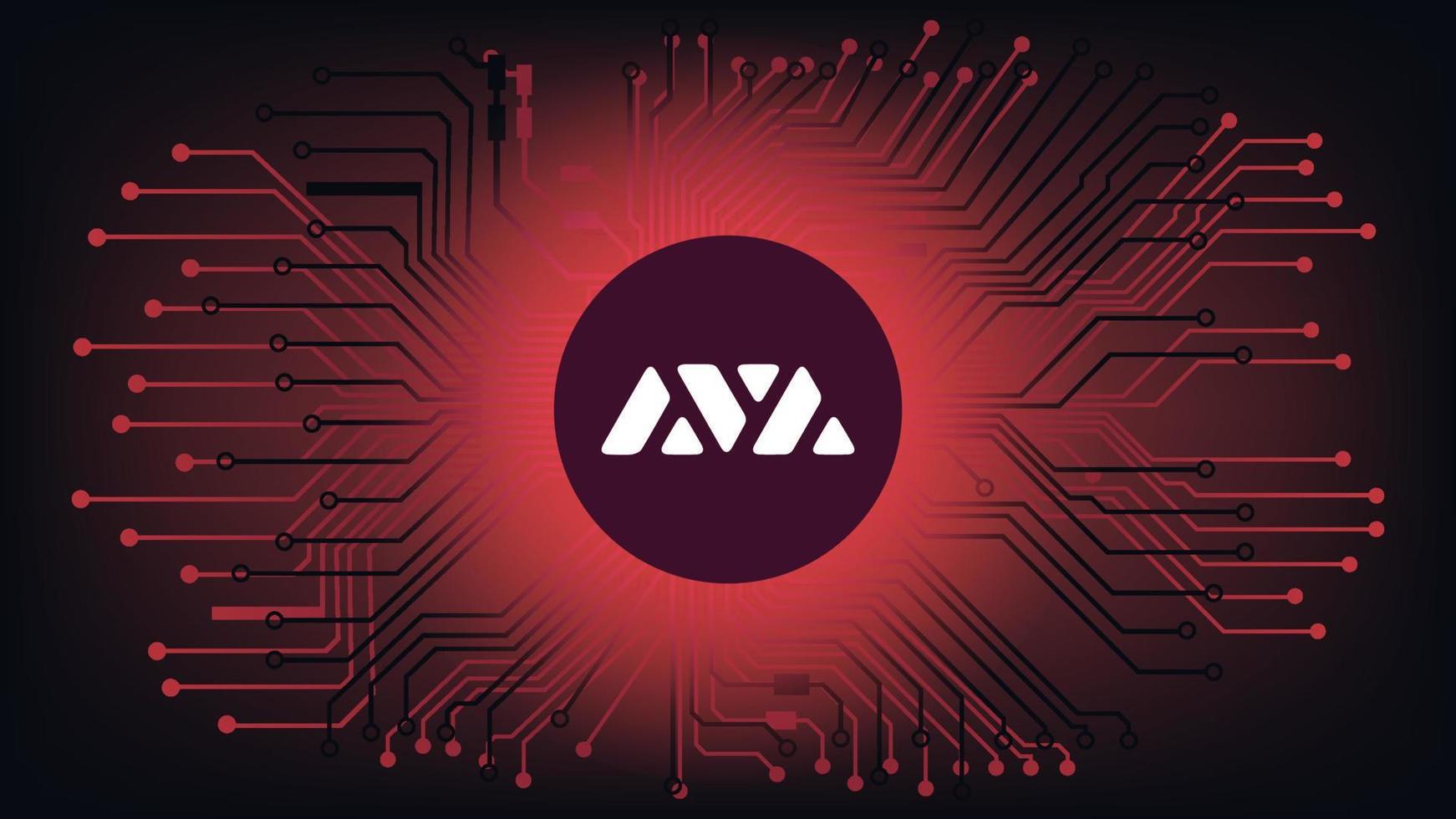 Avalanche AVAX cryptocurrency token symbol of the DeFi project in circle on abstract digital background with pcb tracks. Currency coin icon. Decentralized finance programs. Vector illustration. Pro Vector