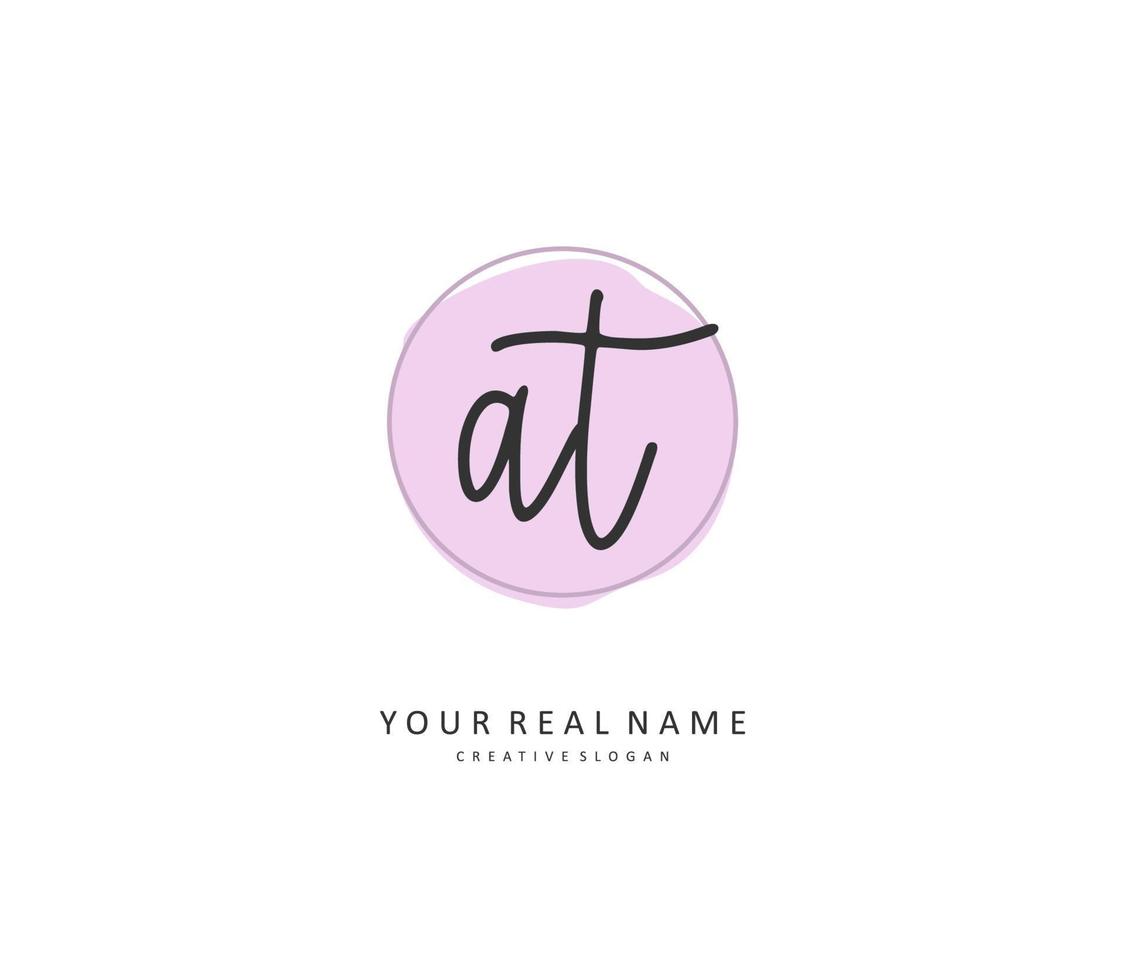 A T AT Initial letter handwriting and signature logo. A concept handwriting initial logo with template element. Pro Vector