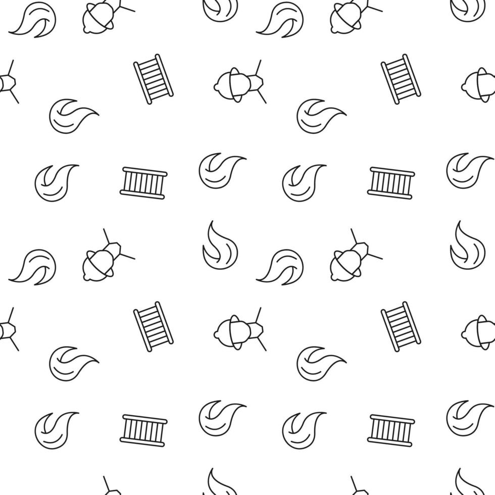 Vector seamless pattern of firefighter, ladder, fire, emergency exit on white background. It can be used for printing on various surfaces Pro Vector