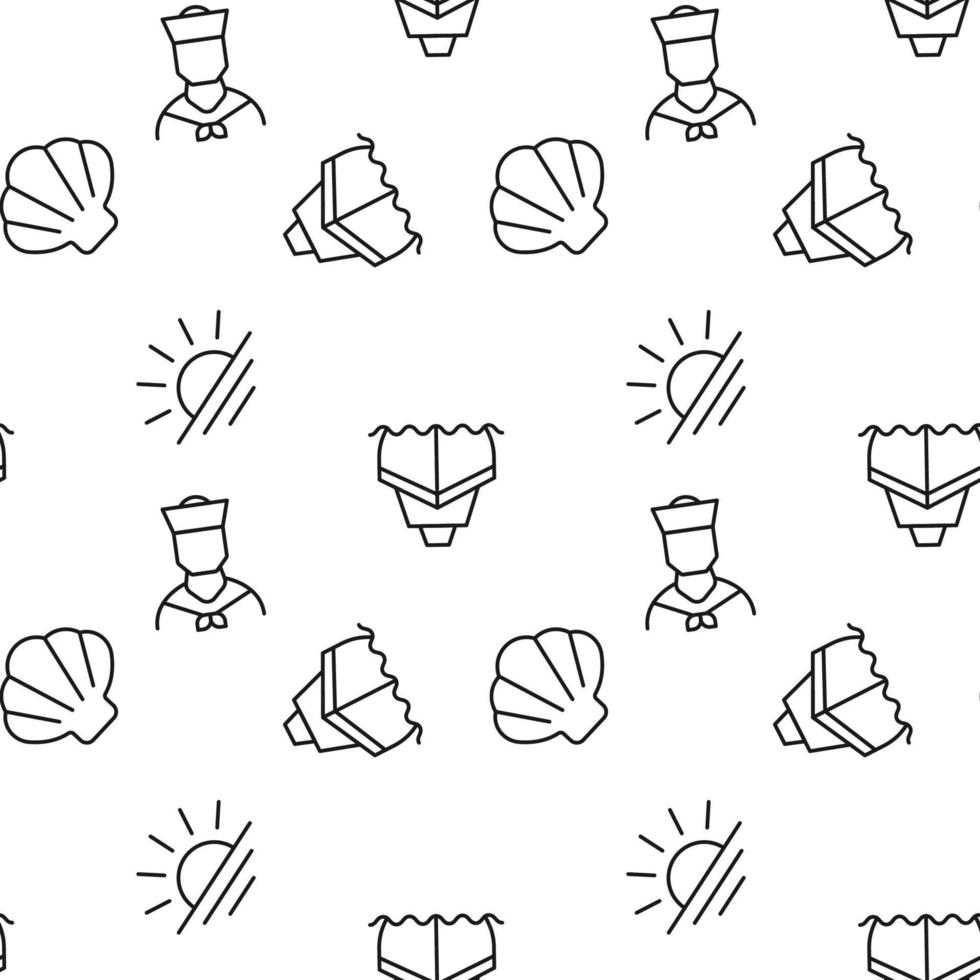 Seamless pattern of ship, captain, sunrise, seashell. Suitable for shops, web sites and applications, media, backgrounds Pro Vector