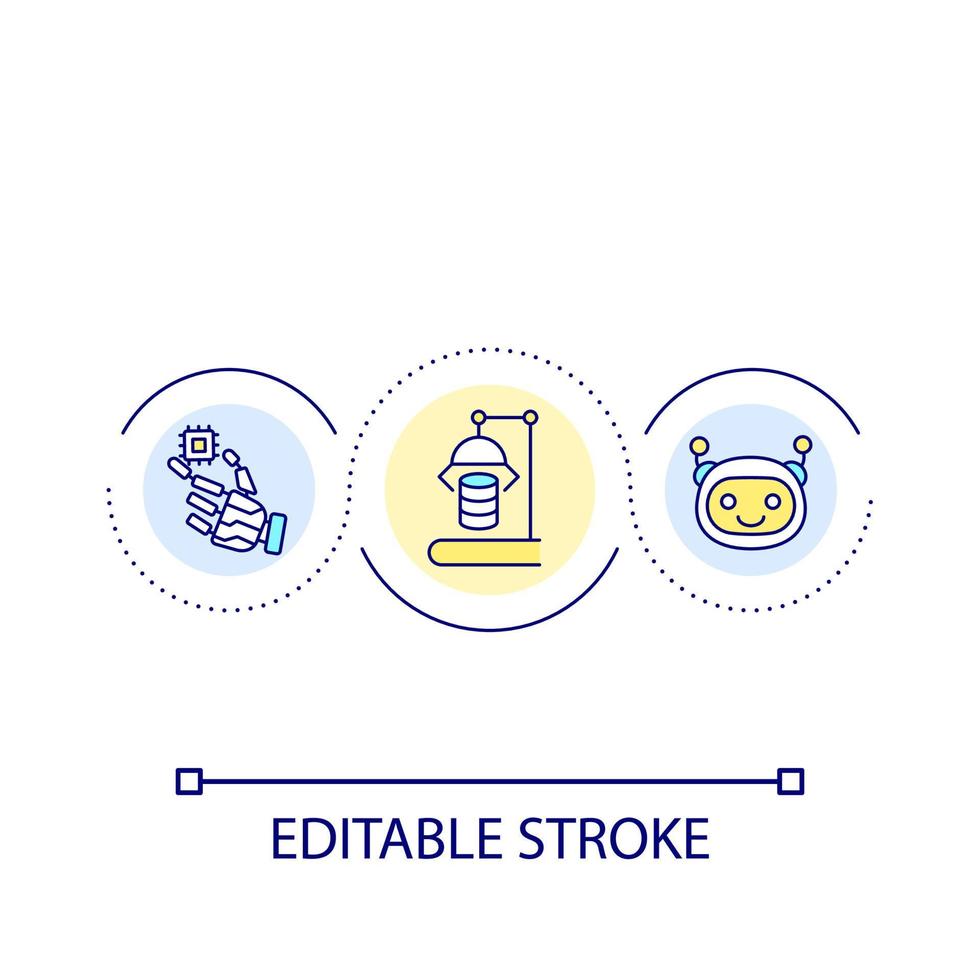 Automated producing loop concept icon. Involve AI technology. Manufacturing optimization abstract idea thin line illustration. Isolated outline drawing. Editable stroke Pro Vector