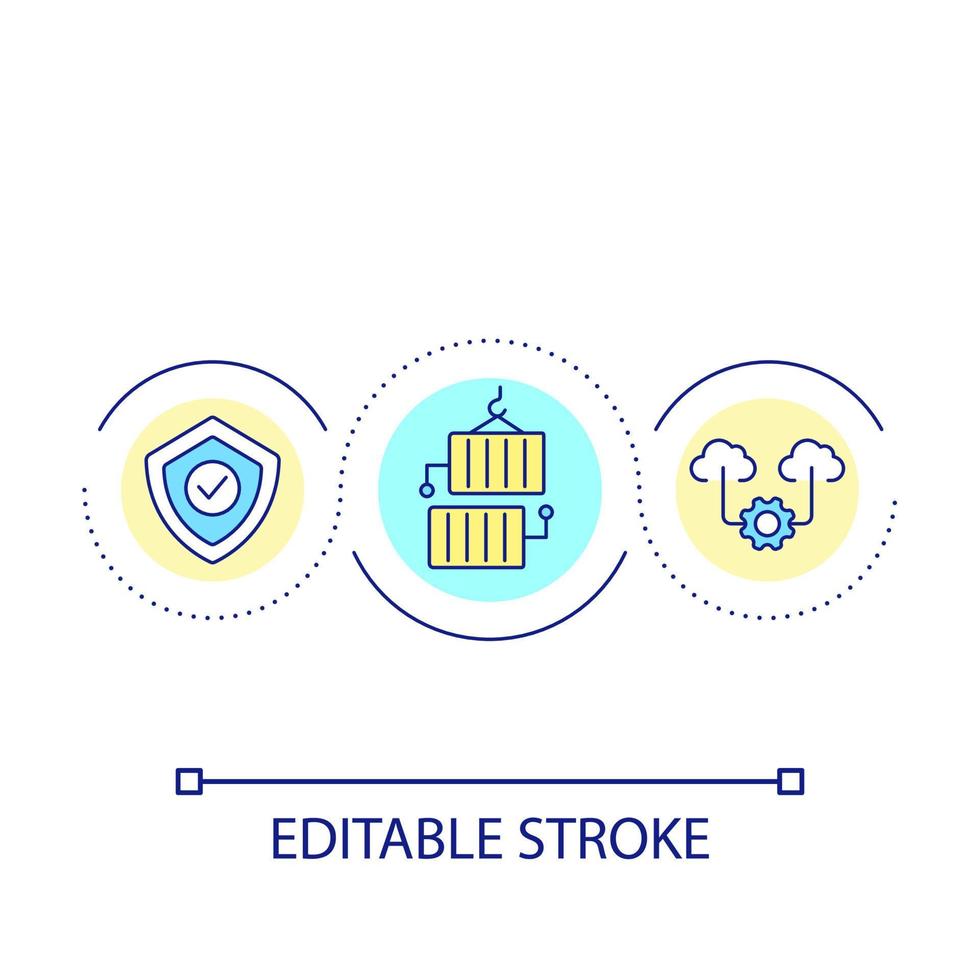 Safe manufacturing loop concept icon. Protect information sharing. Cloud computing security abstract idea thin line illustration. Isolated outline drawing. Editable stroke Pro Vector