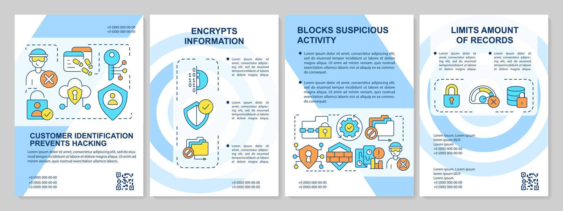 User identification prevents hacking blue brochure template. CIAM. Leaflet design with linear icons. Editable 4 vector layouts for presentation, annual reports Pro Vector