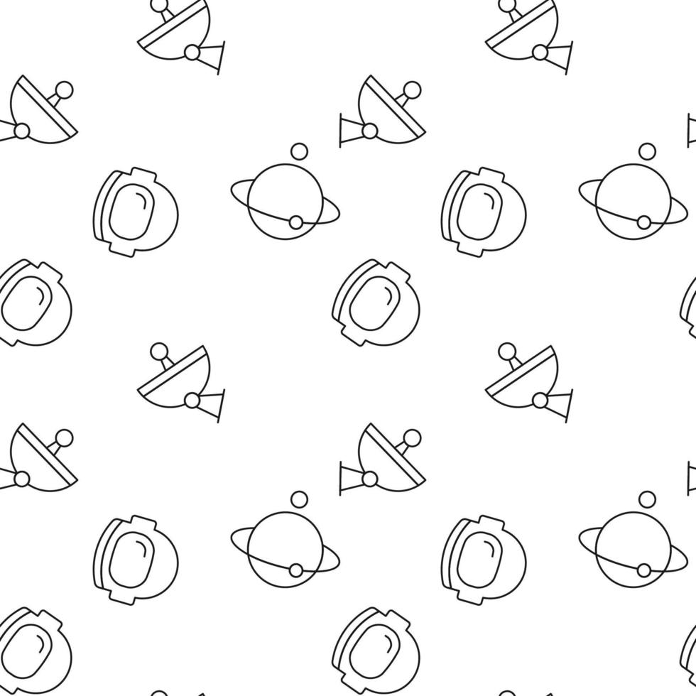 Seamless vector repeating pattern of planet, helmet, astronaut, radar. It can be used for web sites, apps, clothes, covers, banners etc Pro Vector