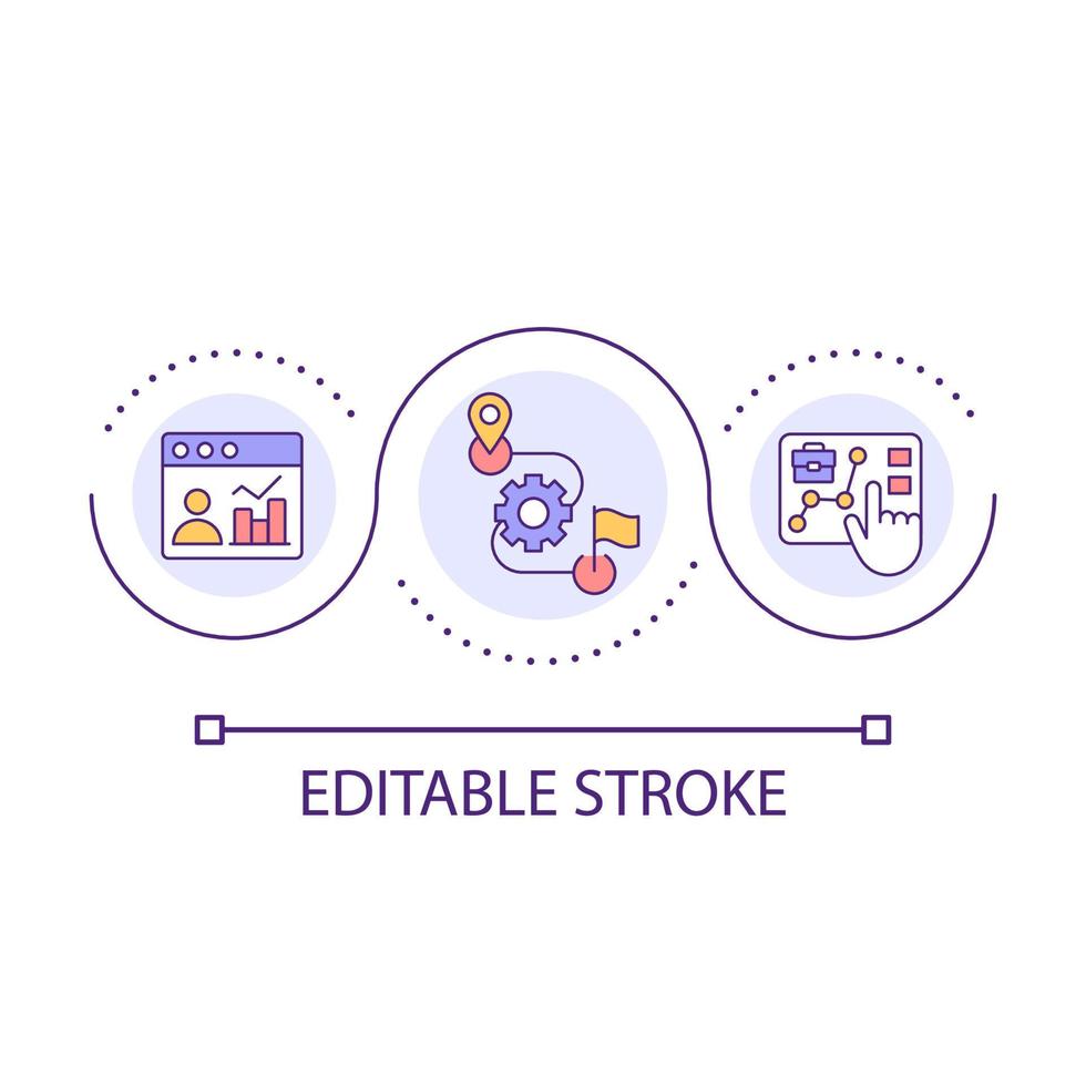 Progress tracking loop concept icon. Business report. Digital program. Employee achievements abstract idea thin line illustration. Isolated outline drawing. Editable stroke Pro Vector