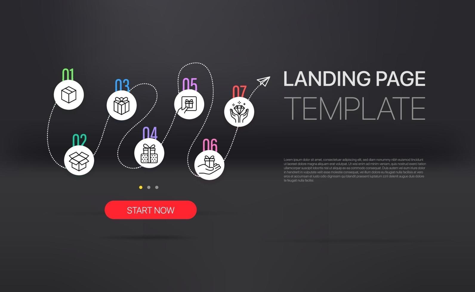 Promo landing page with infographic template. Template with sample text and button Pro Vector