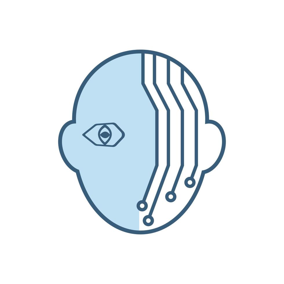 Face of robot AI icon in lines design on white background, technology circuits system icons design, a vector AI symbol concept design for UI creation, artificial intelligence icon Free Vector