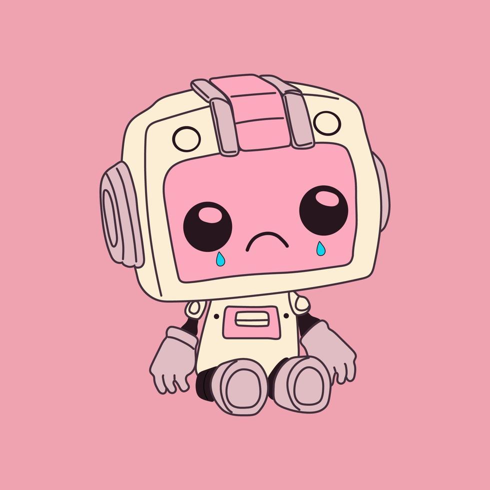 Robot. Cute artificial robotic character crying. Hand drawn Vector illustration. Futuristic retro androids. Cartoon style. Isolated design elements. Pro Vector
