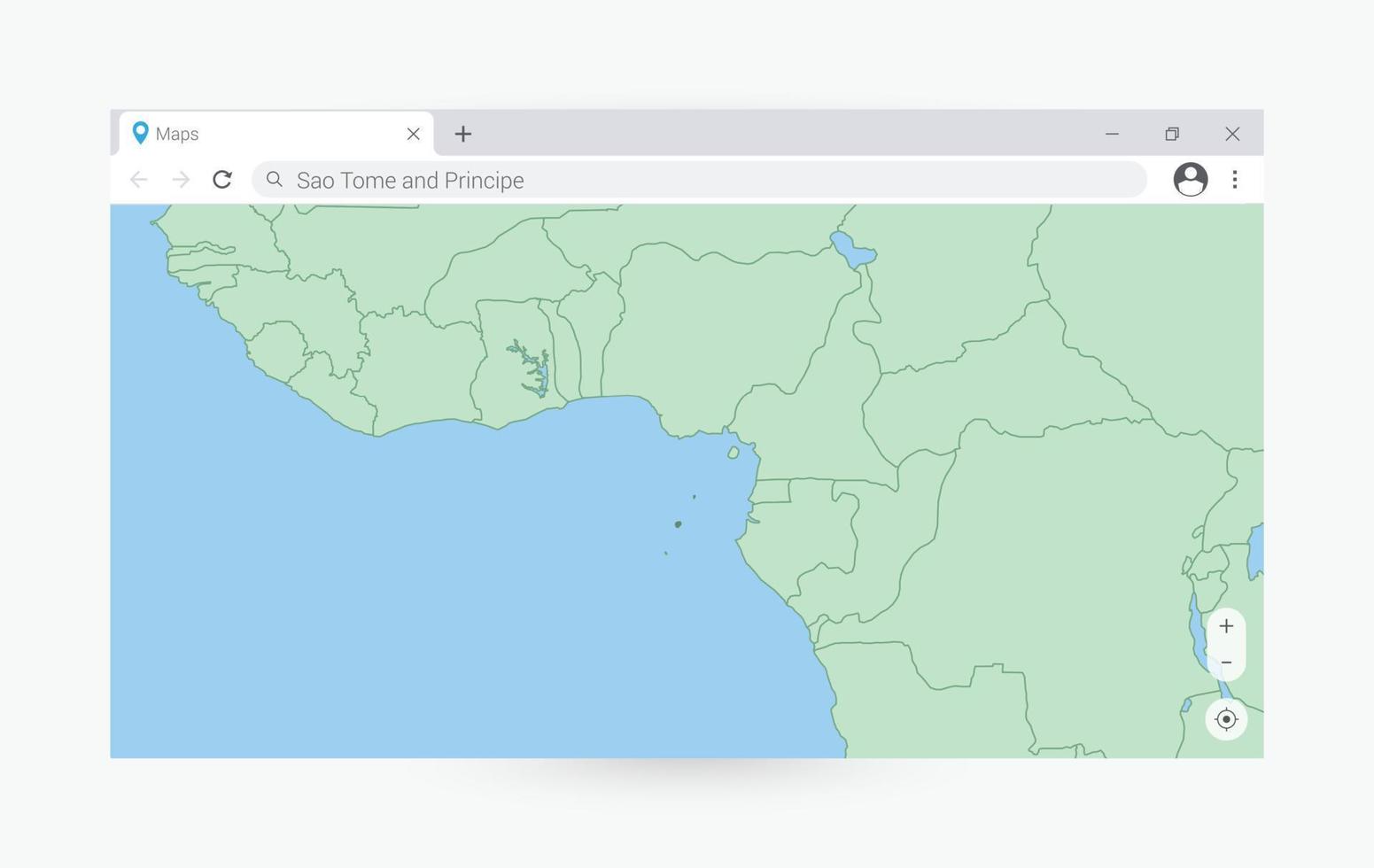 Browser window with map of Sao Tome and Principe, searching Sao Tome and Principe in internet. Pro Vector