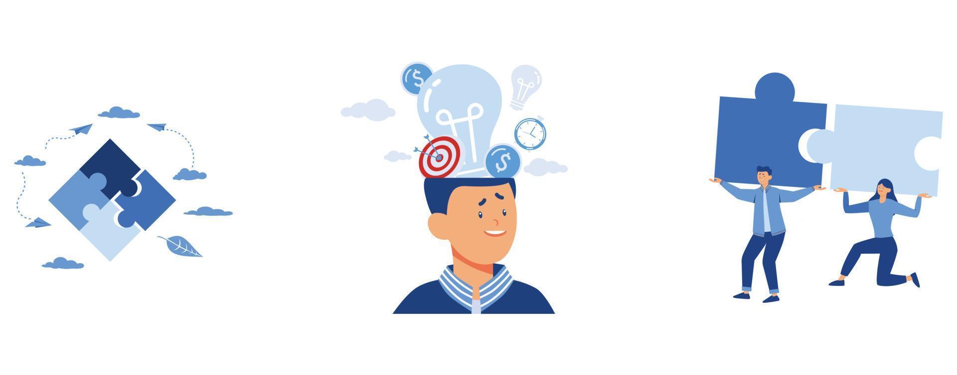 jigsaw puzzles are a great element of team work and search for ideas, brainstorming thought process, puzzle Team elements Business concept, flat vector modern illustration Pro Vector