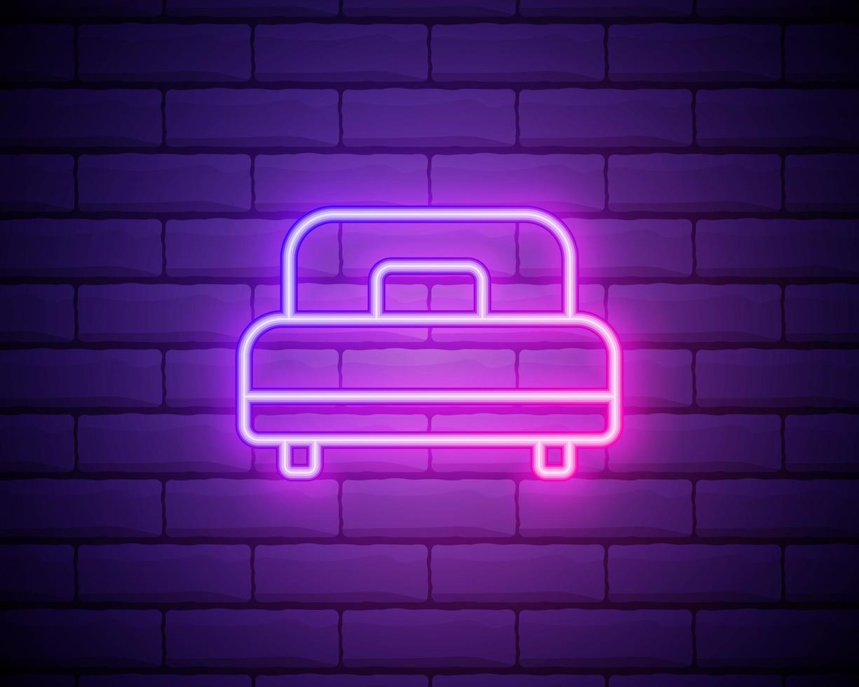 bed neon icon. Elements of furniture set. Simple icon for websites, web design, mobile app, info graphics isolated on brick wall Pro Vector