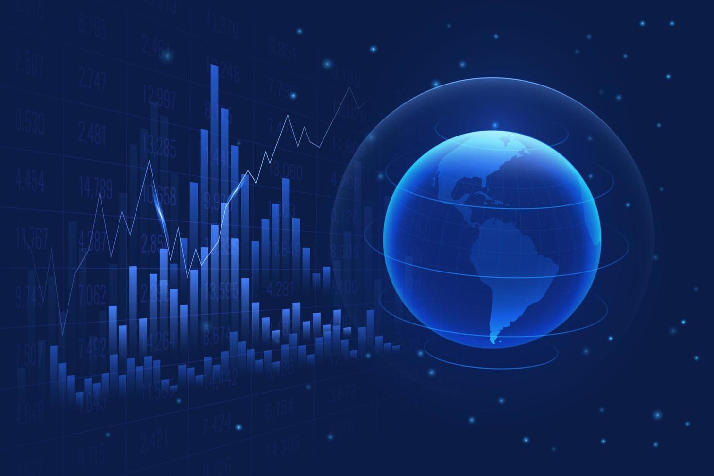Hologram of planet Earth with chart of investment financial data. Analysis indicators, statistics diagram, business charts Pro Vector