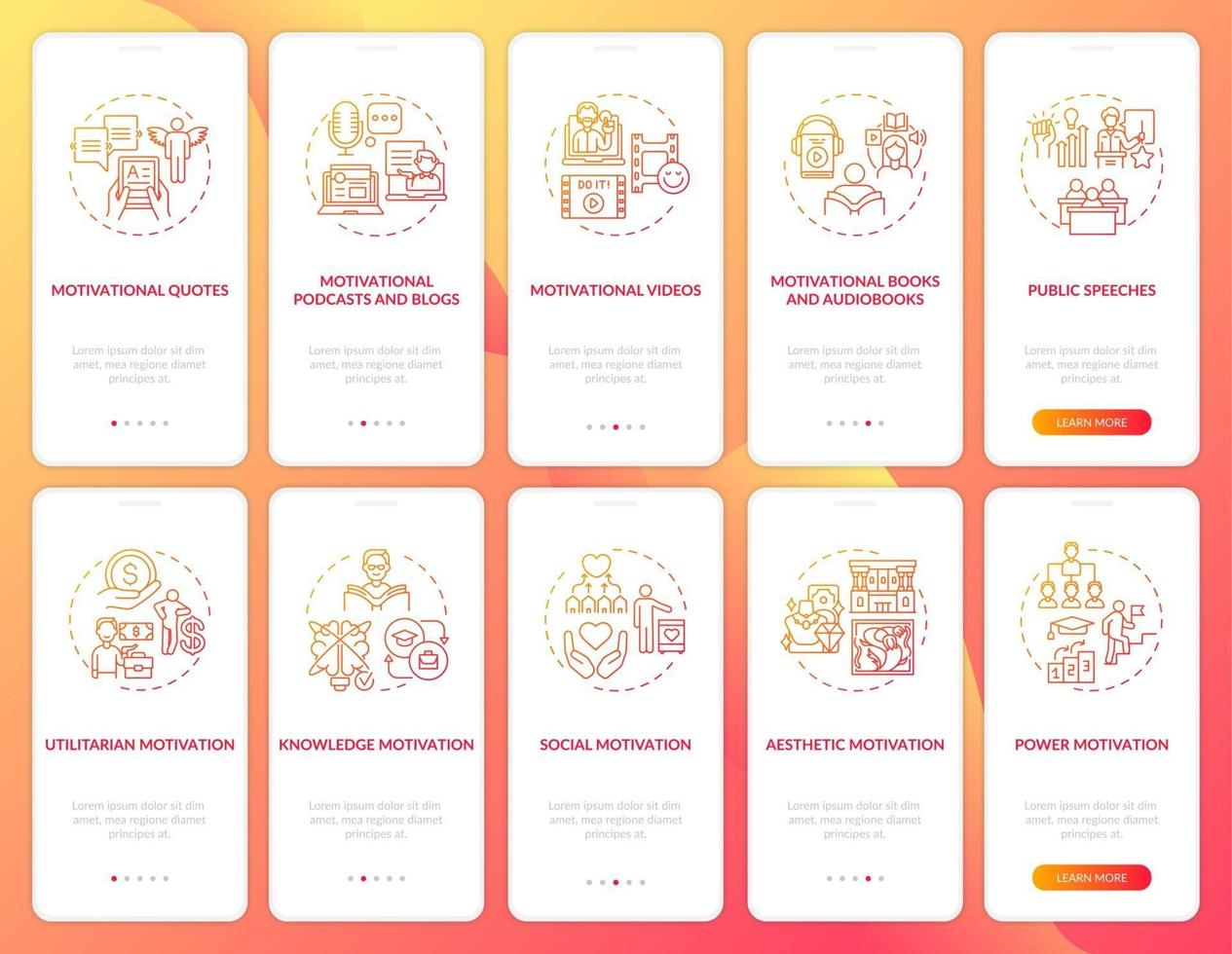 Motivational content onboarding mobile app page screen with concepts set Pro Vector