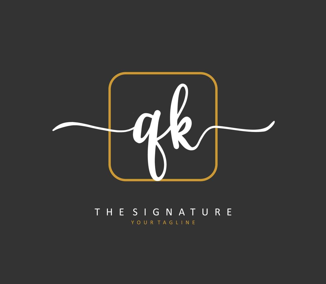 Q K QK Initial letter handwriting and signature logo. A concept handwriting initial logo with template element. Pro Vector
