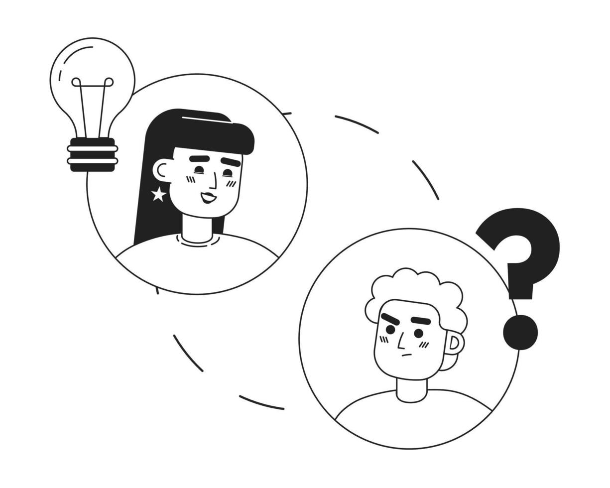 Remote team building activity black and white concept vector spot illustration. Editable 2D flat monochrome cartoon characters for web design. Creative line art idea for website, mobile, blog Pro Vector