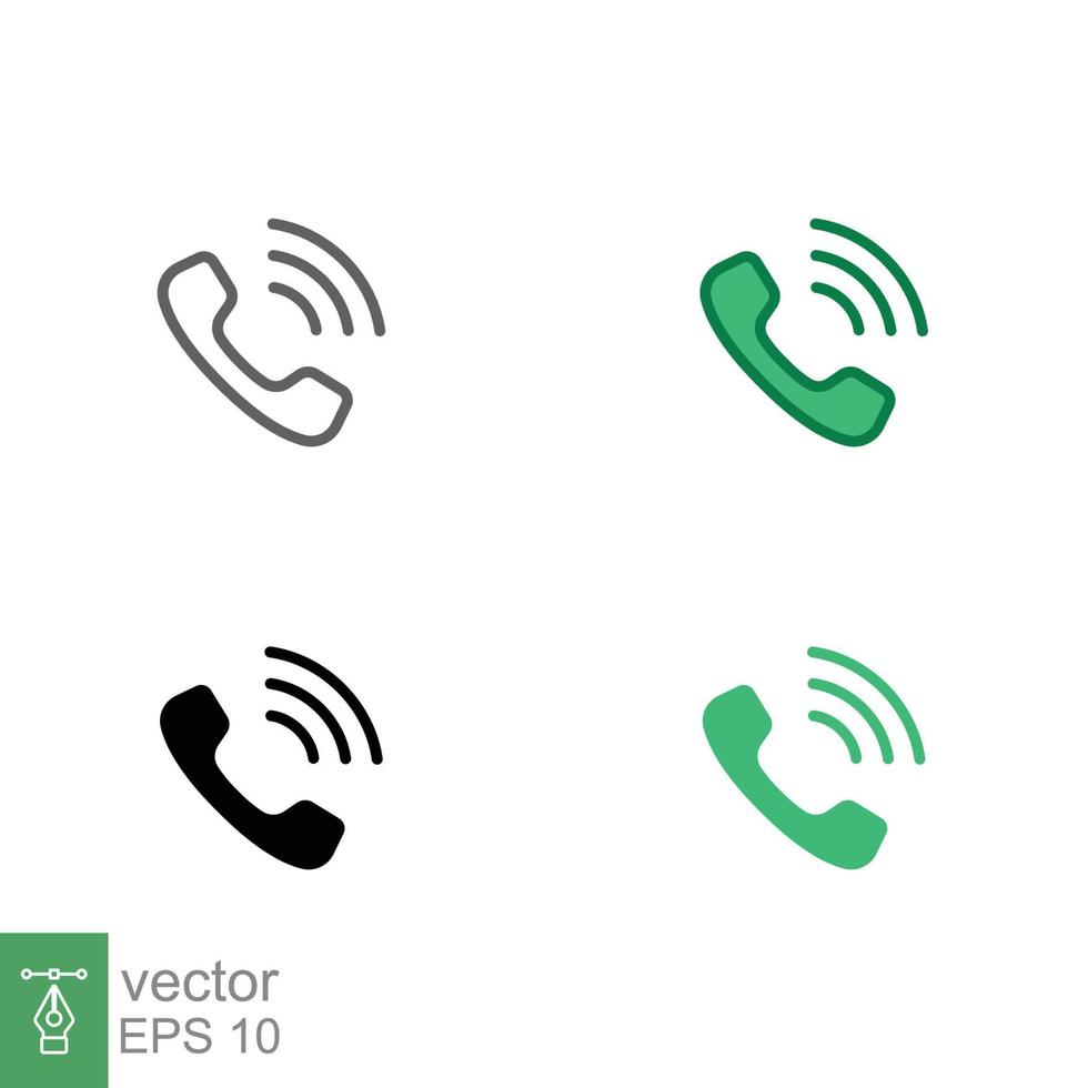 Telephone ringing icon set. Call, phone, incoming, receiver, contact. Simple editable stroke, outline, filled outline, solid and flat style. Vector illustration isolated on white background. EPS 10. Pro Vector