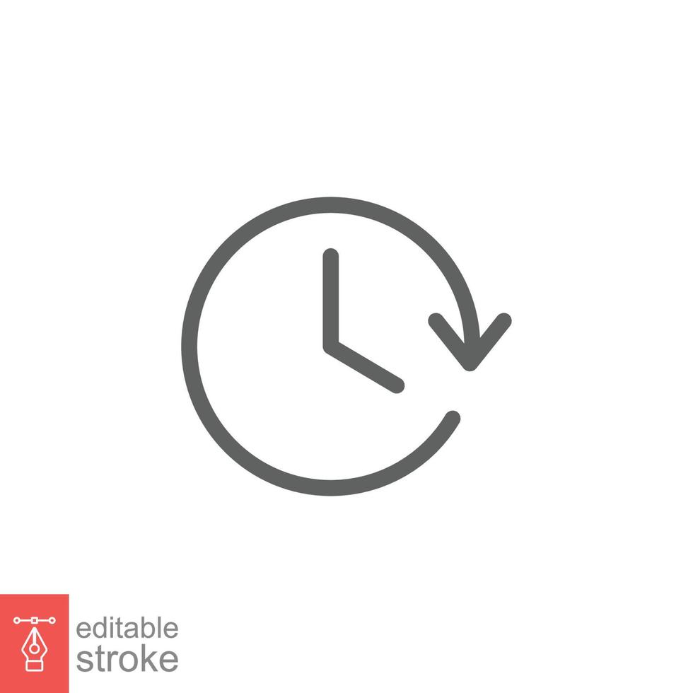 Clock time period with arrow icon. Timer, minute, countdown concept. Simple outline style. Thin line symbol. Vector illustration isolated on white background. Editable stroke EPS 10. Pro Vector