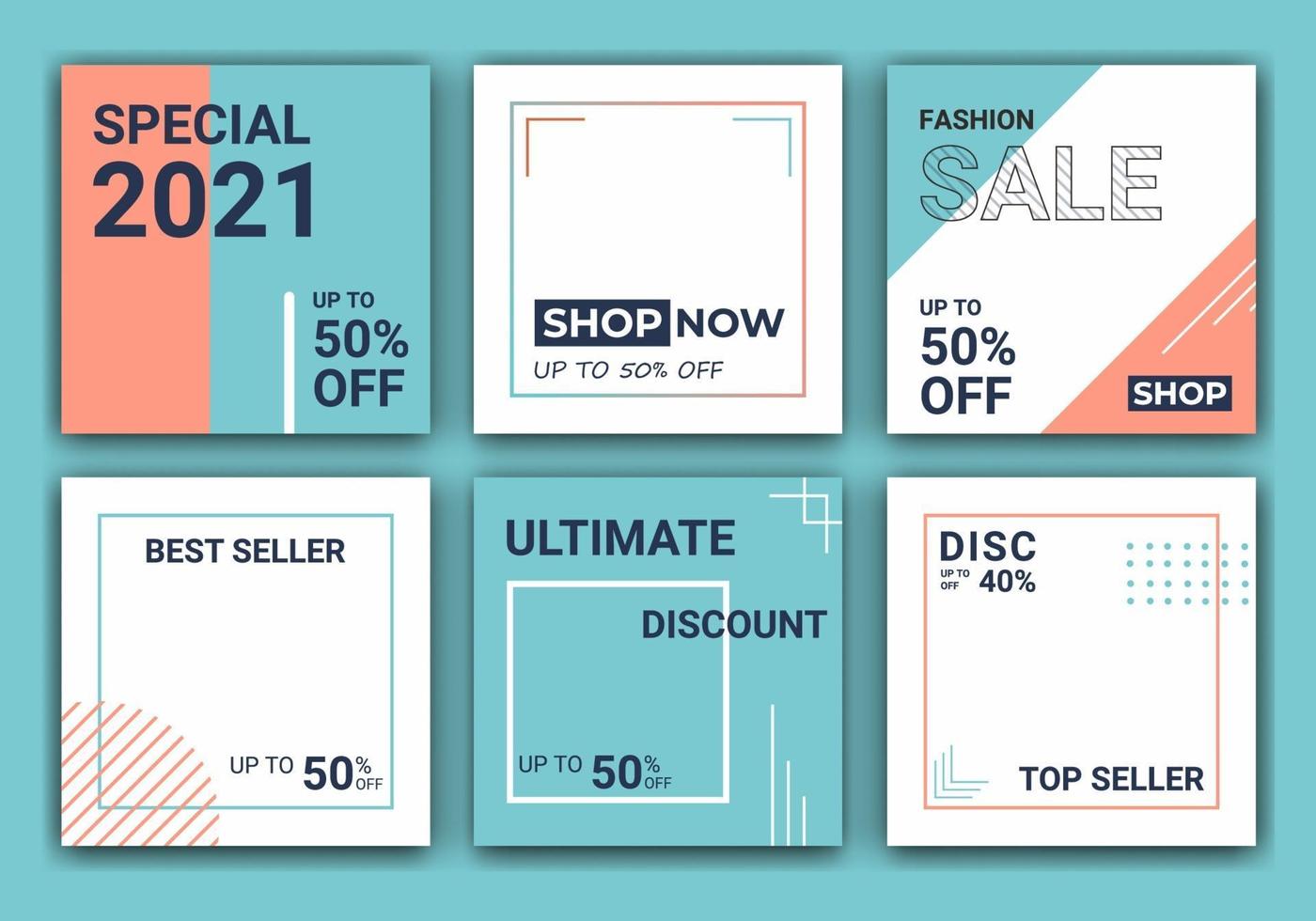 Set of editable post template social media banners and feed post. Sale promotion and digital marketing. Trendy background design for ig ads, app, web mail digital display style. Vector illustration Pro Vector