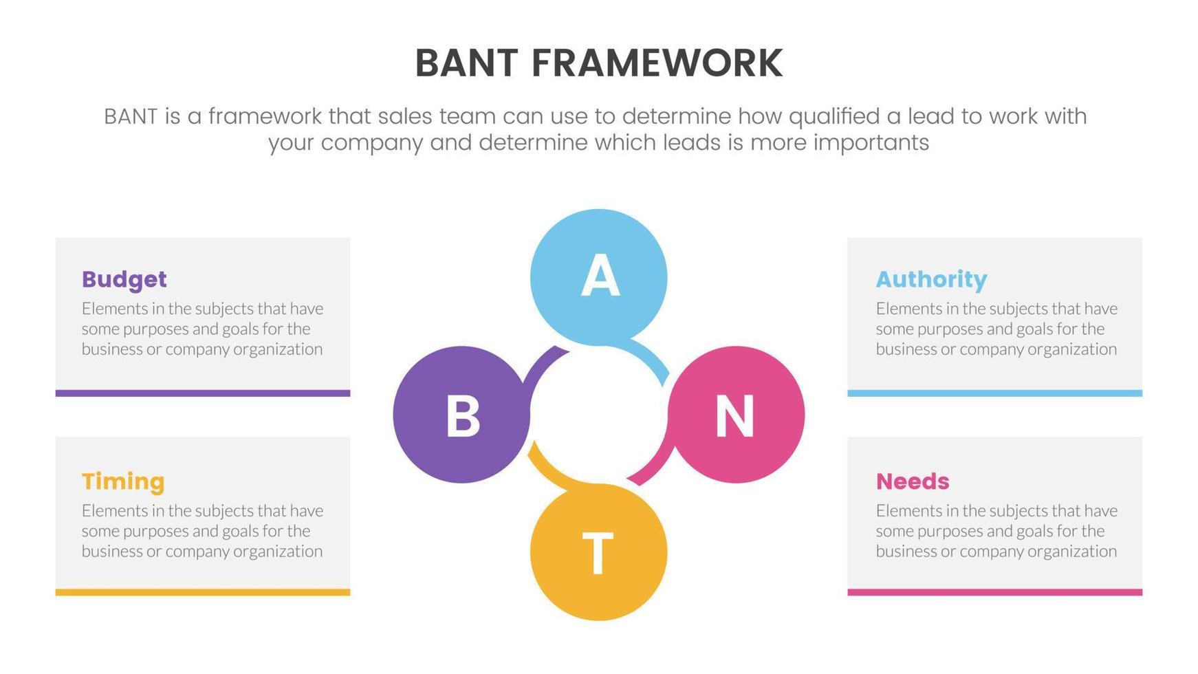 bant sales framework methodology infographic with circle and circular shape information concept for slide presentation vector