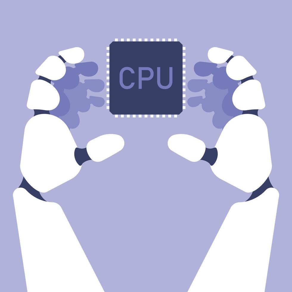 Robotic Hands And A Computer Processor Unit, Isolated On Transparent Background. Pro Vector