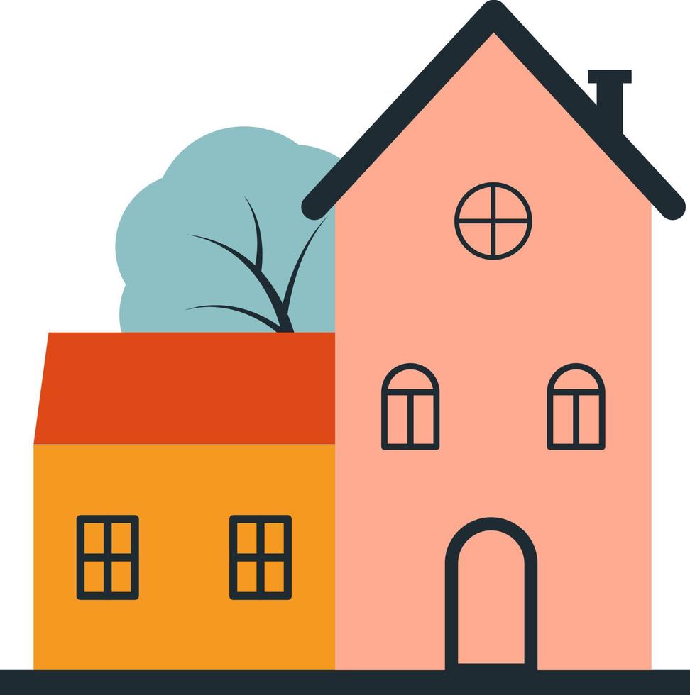 Vector small yellow house with a large pink house next to it and a tree in the background eps 10. Vector a barn with two windows and a tall house with an attic eps 10. Pro Vector