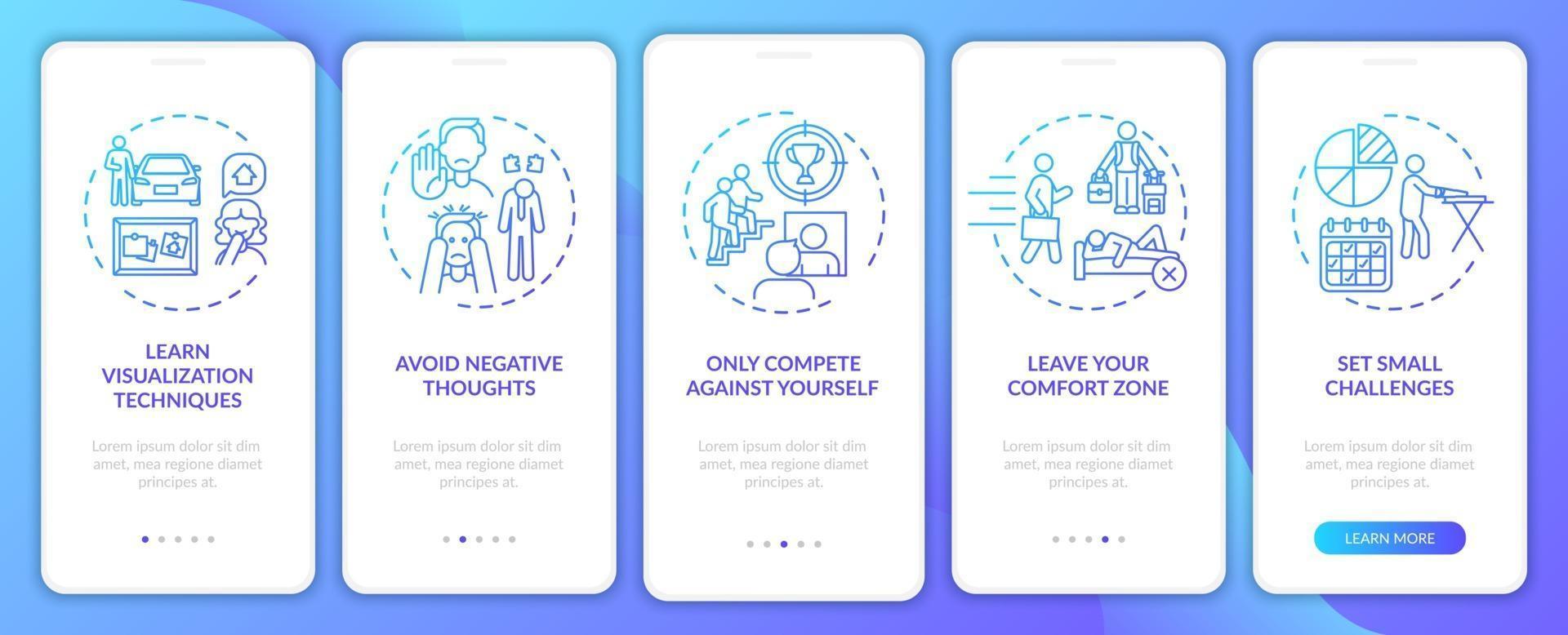 Self-improvement tools navy onboarding mobile app page screen with concepts Pro Vector